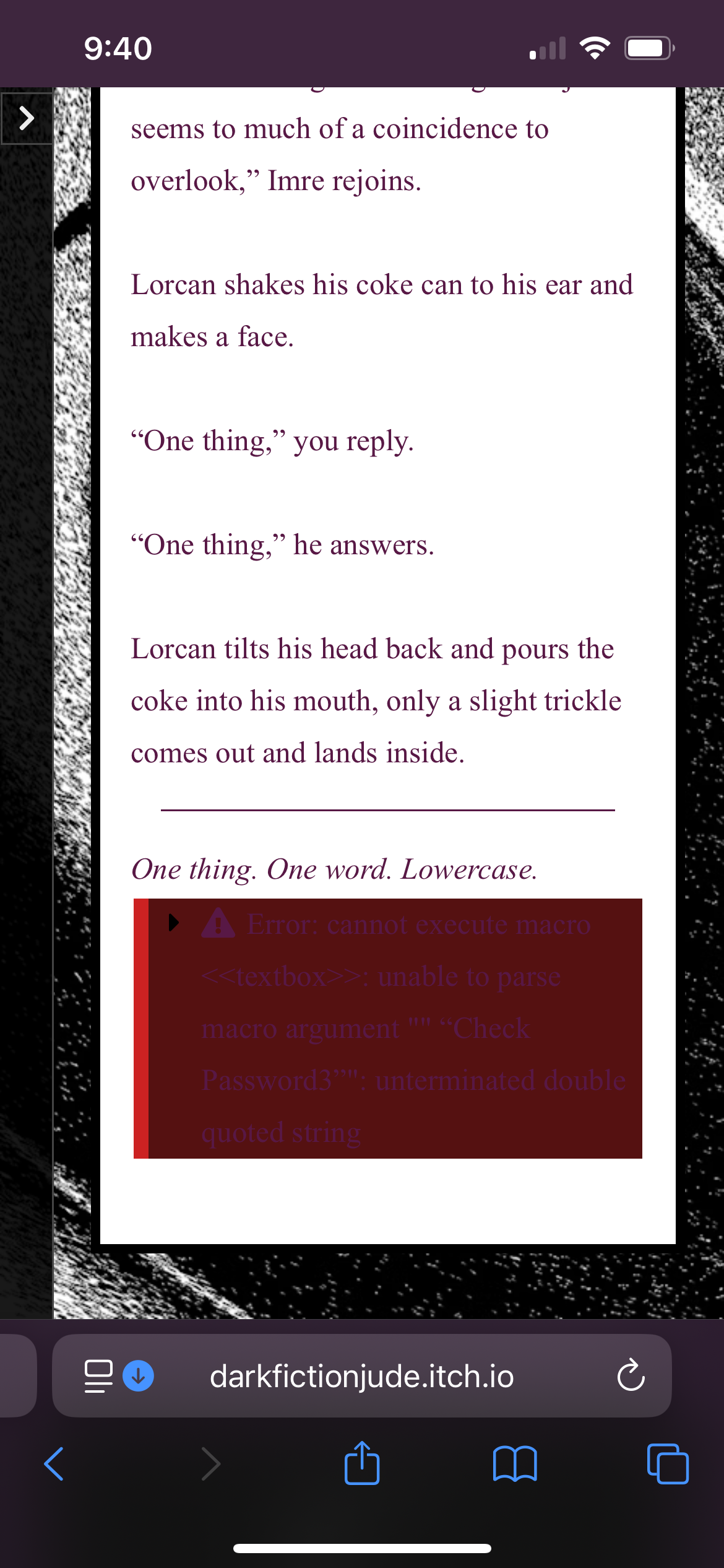 Anyone else getting this error on mobile at turn 418 after letting Imre "play lead detective" with Arthur?